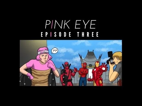 Pink Eye follows the journey of an unlikely woman who finds her super-power at the bottom of a urinal. With all the best intentions, barely any confidence, and no clue, she attempts entry to the super-hero world so she can use her power for good, but finds it takes much more than a superpower to be a hero.